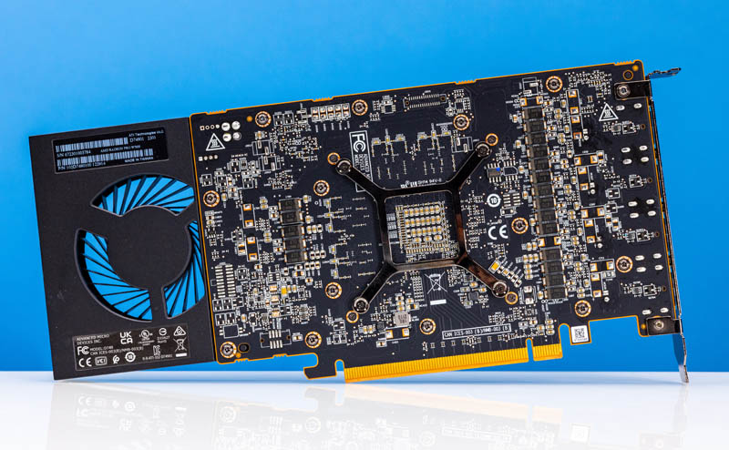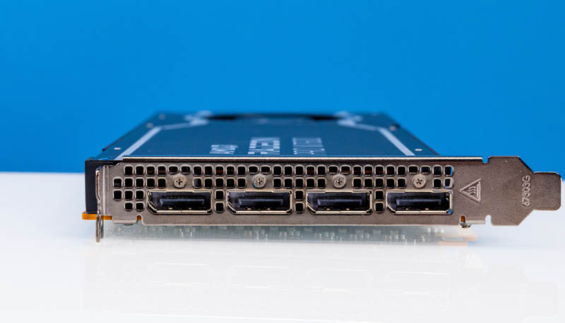 Here is the quad DisplayPort 2.1 output on the back of the card and the single slot bracket. If you compare this to the massive GPUs we used in this week’s Building 3x Intel Xeon W-3400 Workstation and Servers with the ASUS Pro WS W790E SAGE SE piece, this feels dainty in comparison.