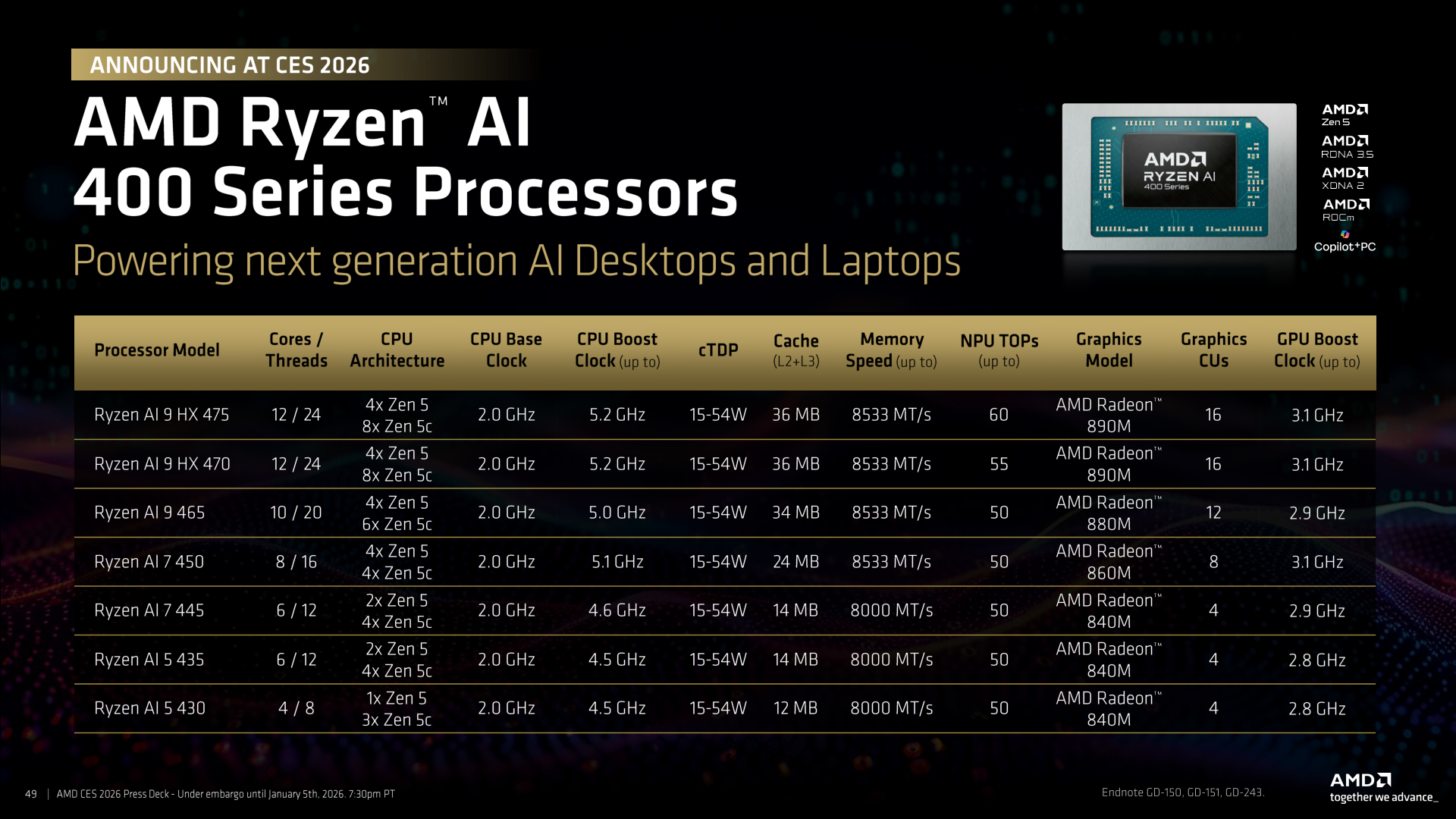 AMD CES 2026 Ryzen AI Pro 400 SKUs