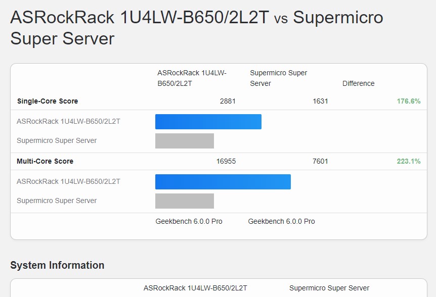 ASRock Rack 1U4LW B650 2L2T AMD Ryzen 9 7900 Versus Intel Xeon D 1749NT Geekbench 6