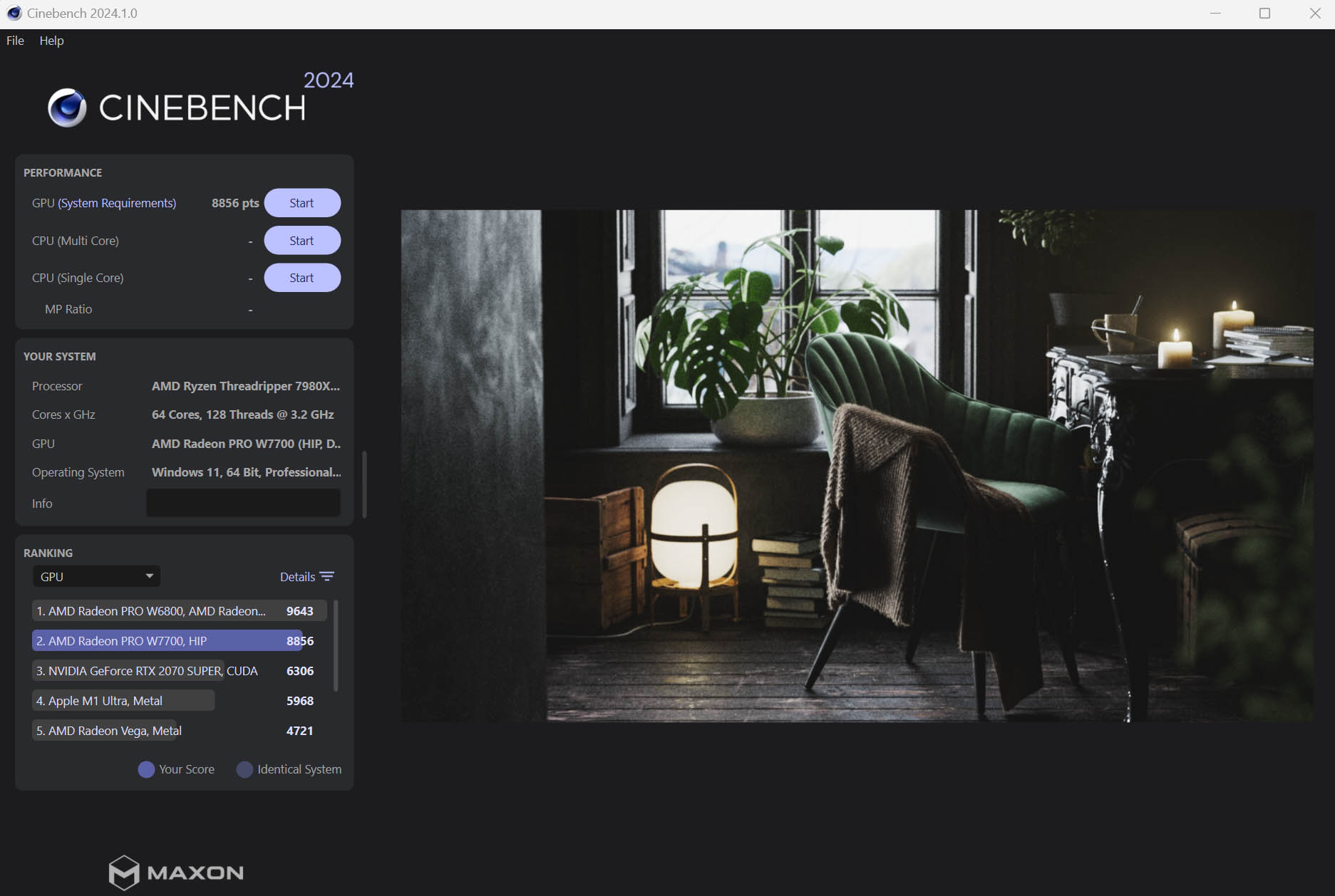 AMD Radeon PRO W7700 Cinebench 2024 GPU OOB