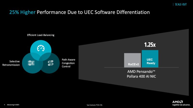 AMD says that UEC features can yield much higher performance at at cluster level due to the new features like congestion control and load balancing. Again, as some perspective, NVIDIA would say it already has some features UEC is bringing in Spectrum-X deployed at scales in AI training clusters.