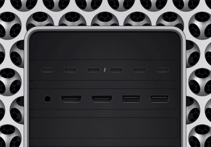 The new Apple Mac Pro M2 Ultra gets eight Thunderbolt 4 ports. Six are on the back of the system and two are on the top. That is awesome.