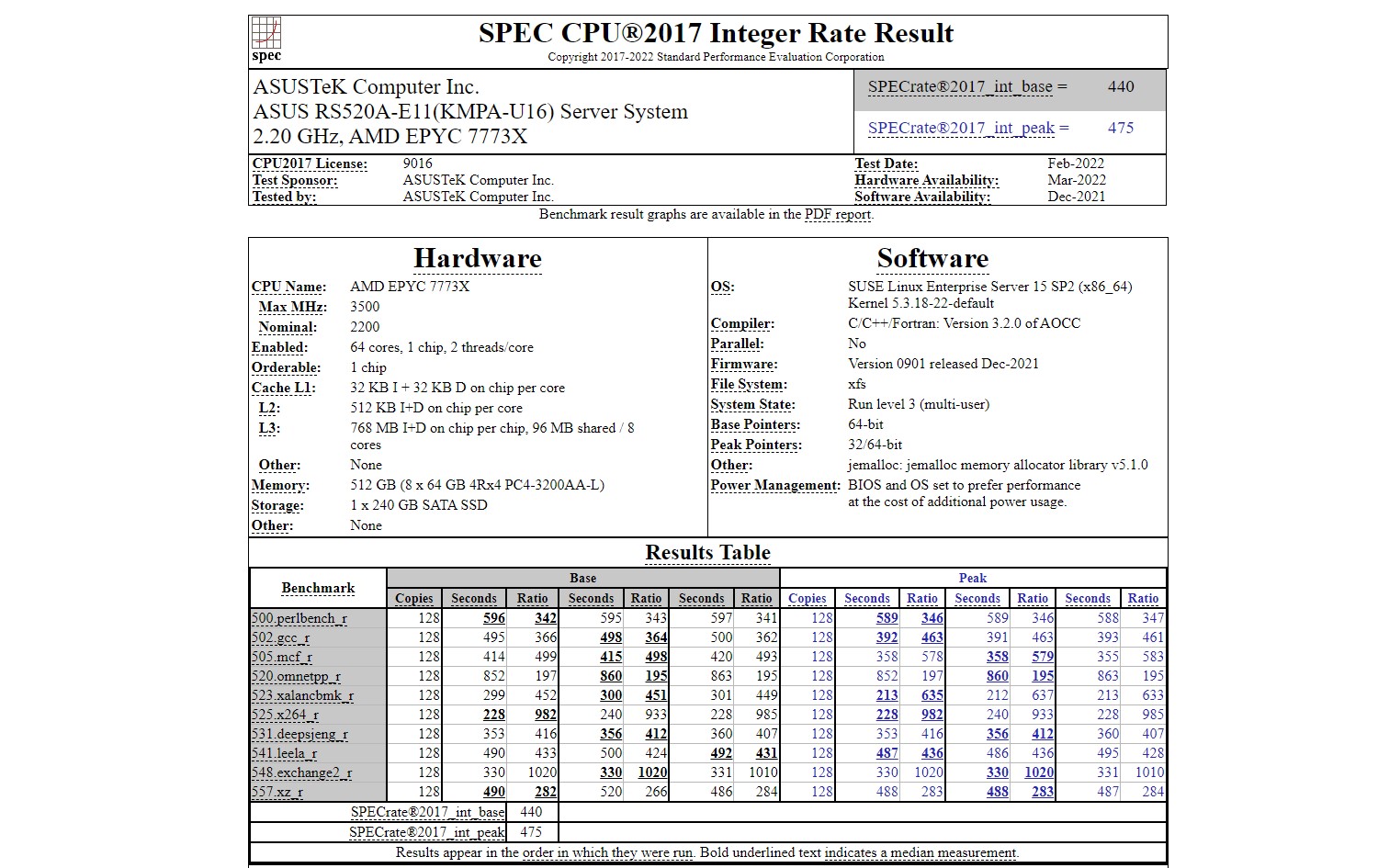 ASUS AMD EPYC 7773X SPECrate2017_int_base Result