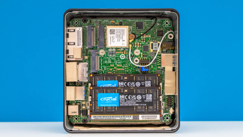 Memory is DDR5-5600 SODIMM and we tried up to two 48GB SODIMMs for 96GB.