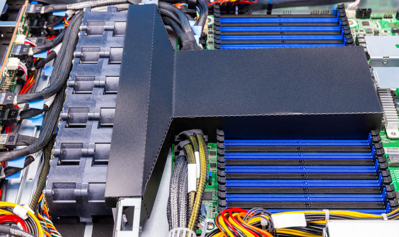 The cooling setup is very different here. The fans all funnel into an airflow guide that brings cool air over the CPU cooler. It seems like there is enough airflow around the airflow guide to keep everything cool inside the system, but it feels like two of these modules should cool the rest of the chassis instead of the CPU just based on other designs we have seen.