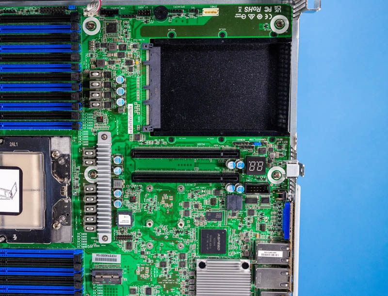 Behind the CPUs and memory, we get dual PCIe Gen5 x4 M.2 SSD slots for boot media. We also get a heatsink for the Broadcom BCM57416 10Gbase-T controller.