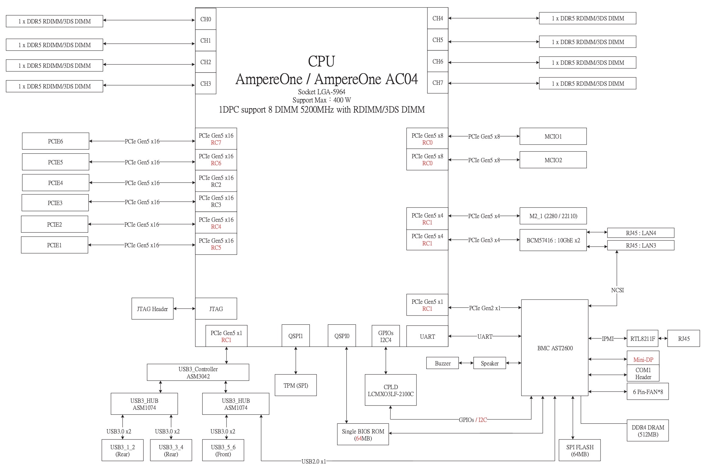 ASRock Rack AMPONED8 2T BCM Block Diagram