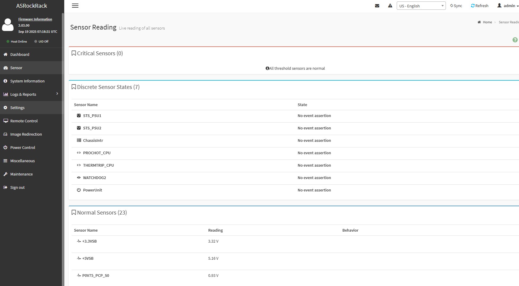 ASRock Rack AMPONED8 Management Sensors