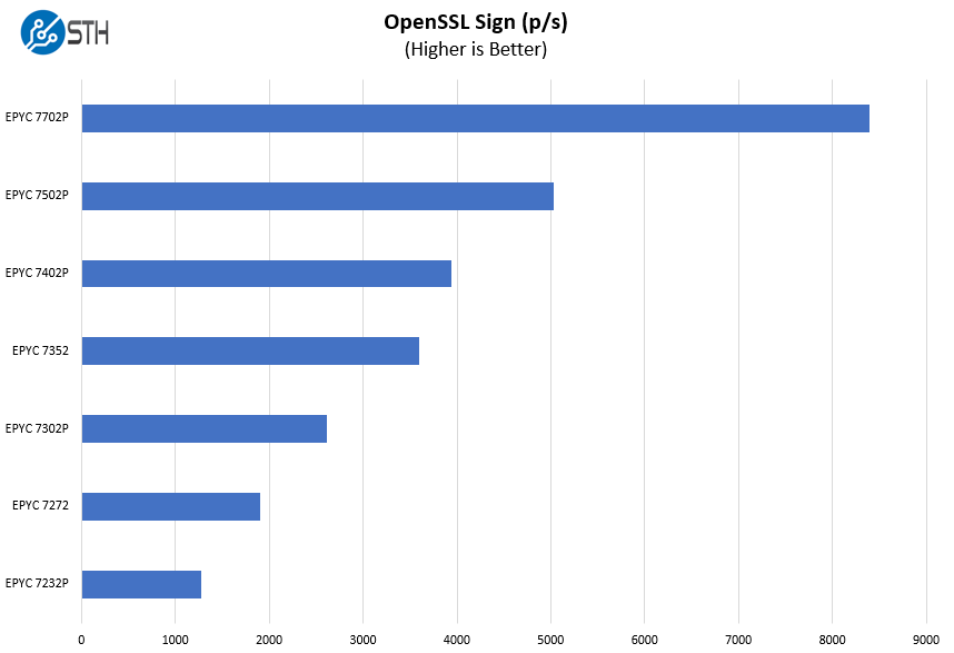 OpenSSL is widely used to secure communications between servers. This is an important protocol in many server stacks. We first look at our sign tests: