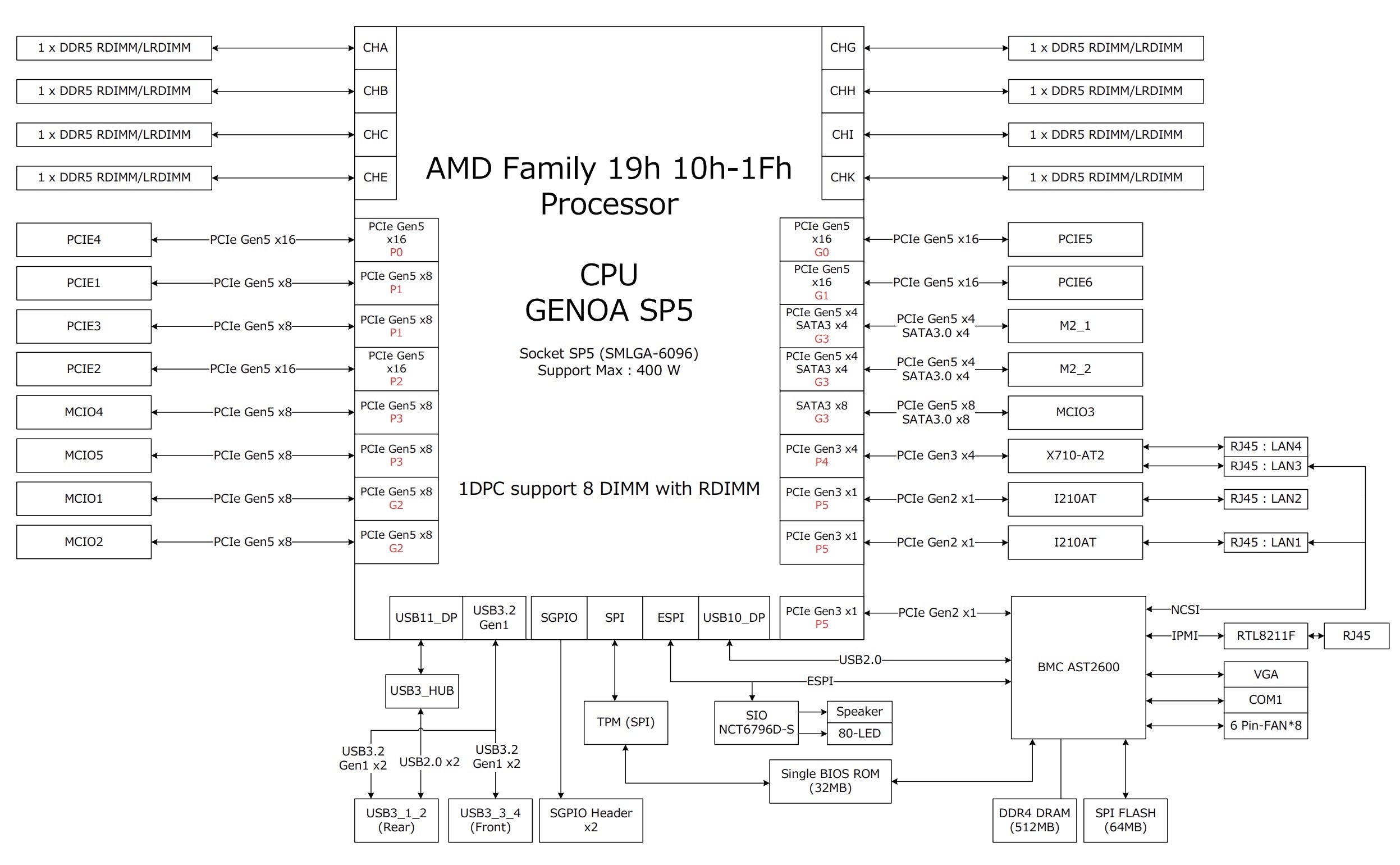 ASRock Rack TURIND8 2L2T Block Diagram
