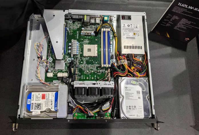 To go along with the two motherboards, the company showed off the ASRock Rack 1U2LW-X470 server. This 1U platform is a cost-optimized solution that uses the ASRock Rack X470D4U from above.