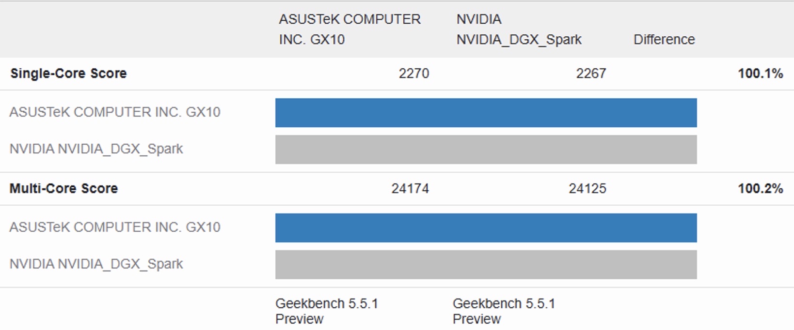 ASUS Ascent GX10 To NVIDIA DGX Spark Geekbench 5 CPU