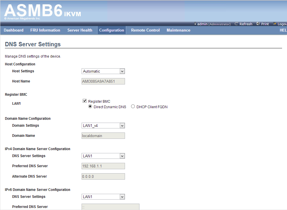 Since the ASUS ASMB6 iKVM solution is network connected, having the ability to edit DNS information is very important.