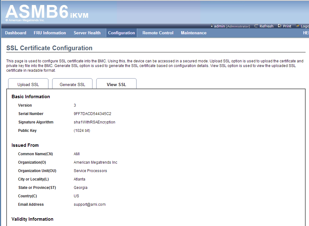 After logging in, one is sent to the dashboard. I would generally recommend IE or Firefox with MegaRAC solutions.