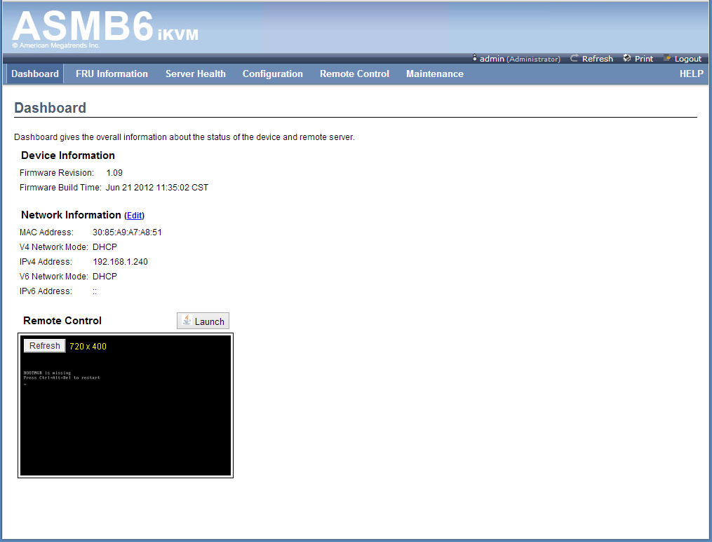 ASUS does customize the dashboard a bit from the stock AMI MegaRAC interface. One can see that the ASUS ASMB6 iKVM dashboard includes a JAVA app showing the current monitor view.