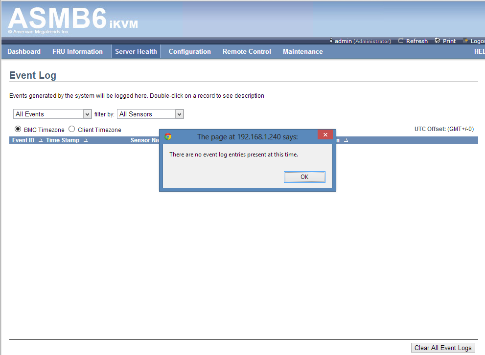 Another aspect to Server Health is looking at the event log. On a plus side, the ASUS Z9NA-D6 has been extremely stable. On the minus side, that stability did not generate an event for the Event Log screen shot here.