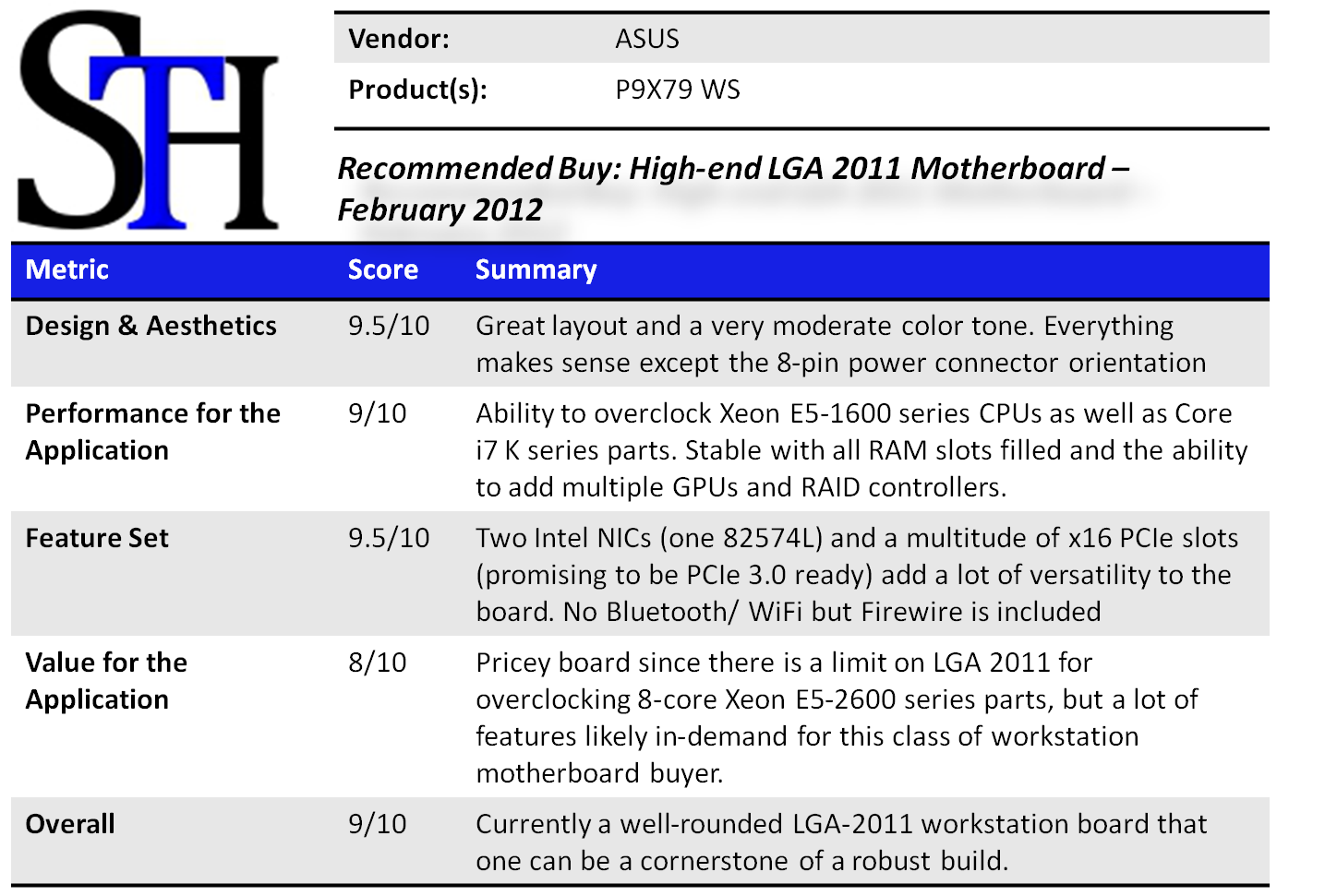 Breaking this board down, I would have to recommend the ASUS P9X79 WS over the standard P9X79 if one wanted to build a big platform. VMware workstation and Hyper-V virtualization solutions are going to be an increasingly interesting option for developers as one can fill this board up with 64GB of RAM and have more virtual machine RAM available than with ESXi 5.0 which is limited to 32GB total. I would urge ASUS to look at trying to fit the board in an ATX form factor and to come up with a plan to phase-out the Firewire functionality in favor of Bluetooth and possibly WiFi. The number of users with mobile devices that are both Bluetooth and WiFi enabled probably outnumber those that have Firewire devices several-fold at this point. With that being said, having so many PCIe x16 physical slots is great and the board has lots of expandability options and nice software features. I do think the board is expensive, but a platform like this costs three times as much for a common CPU and memory configuration versus a LGA 1155 board, so a motherboard that is 50% more does not seem too onerous. Buyers know that it is a lower volume platform, and more complex as one can easily see eight DIMM slots. At sub-$400 I think the board is still priced fairly.