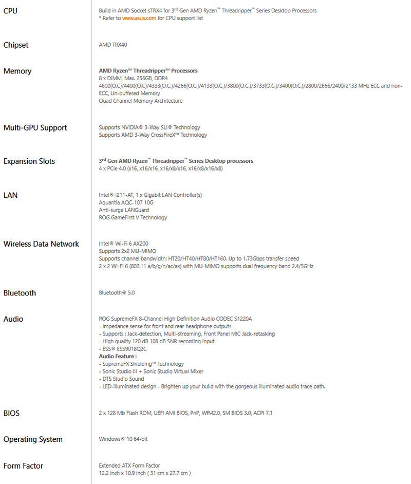 ASUS ROG Zenith II Extreme Motherboard Specifications