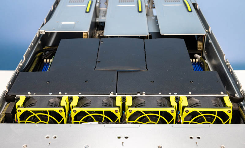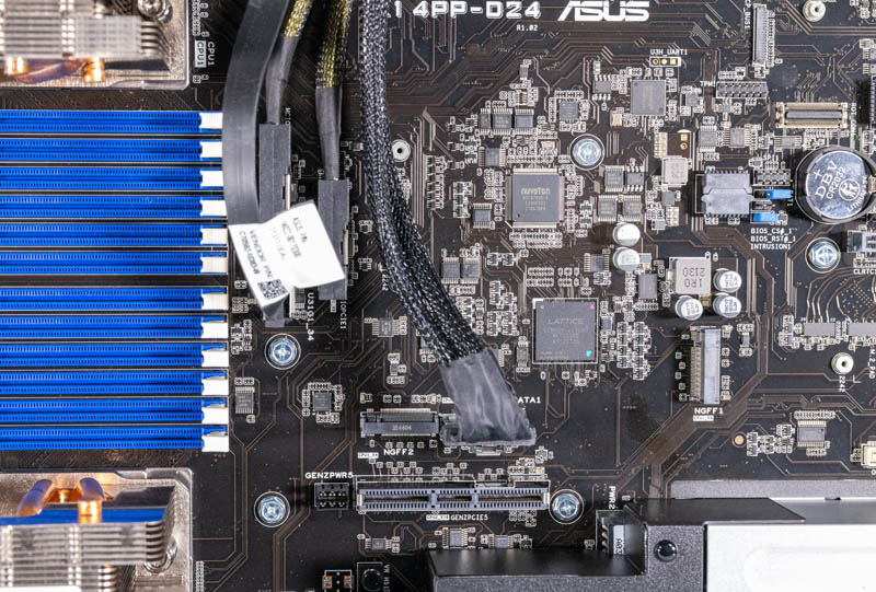 There is a small feature hiding under these cables. One of the M.2 slots is here. The other is to the right of the photo below. Internally, these are the two M.2 slots for the system, commonly used for boot.