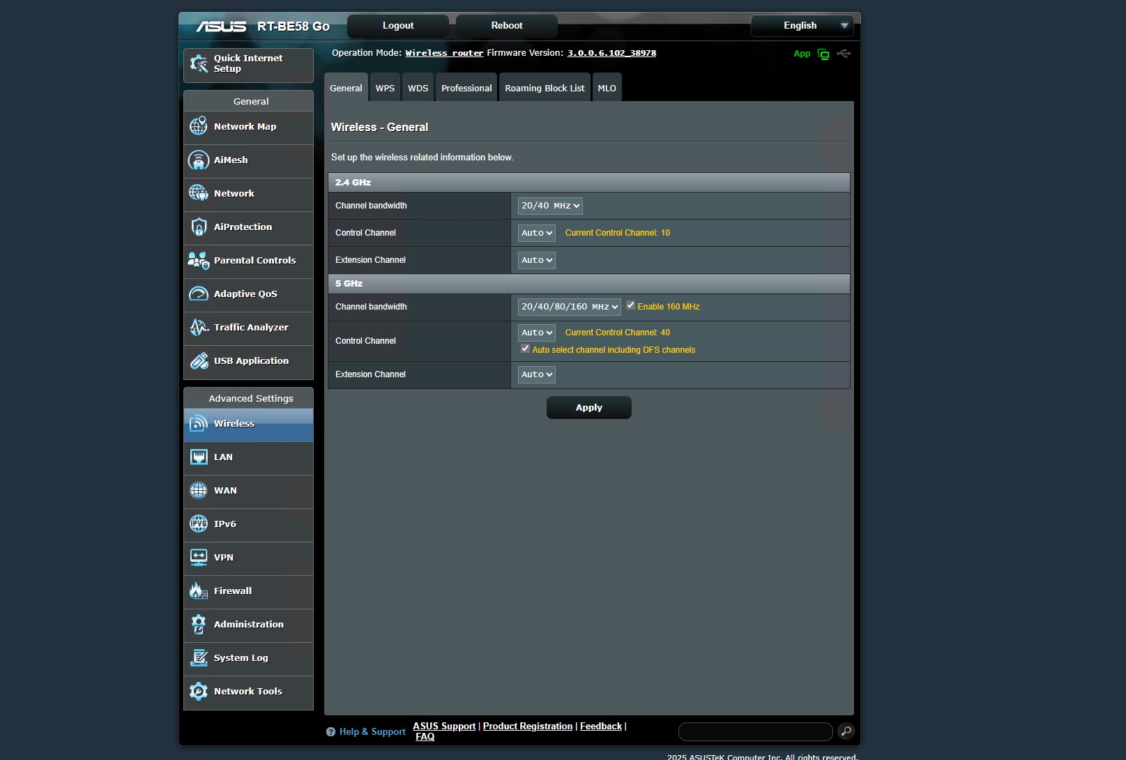 HomeASUS RT-BE58 Go Portable WiFi 7 Router ReviewASUS RT BE58 Go Admin Wireless Settings