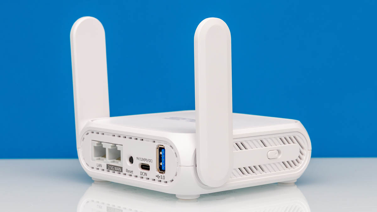 HomeASUS RT-BE58 Go Portable WiFi 7 Router ReviewASUS RT BE58 Go BE3600 Dual Band Wi Fi Router Rear Angled 4