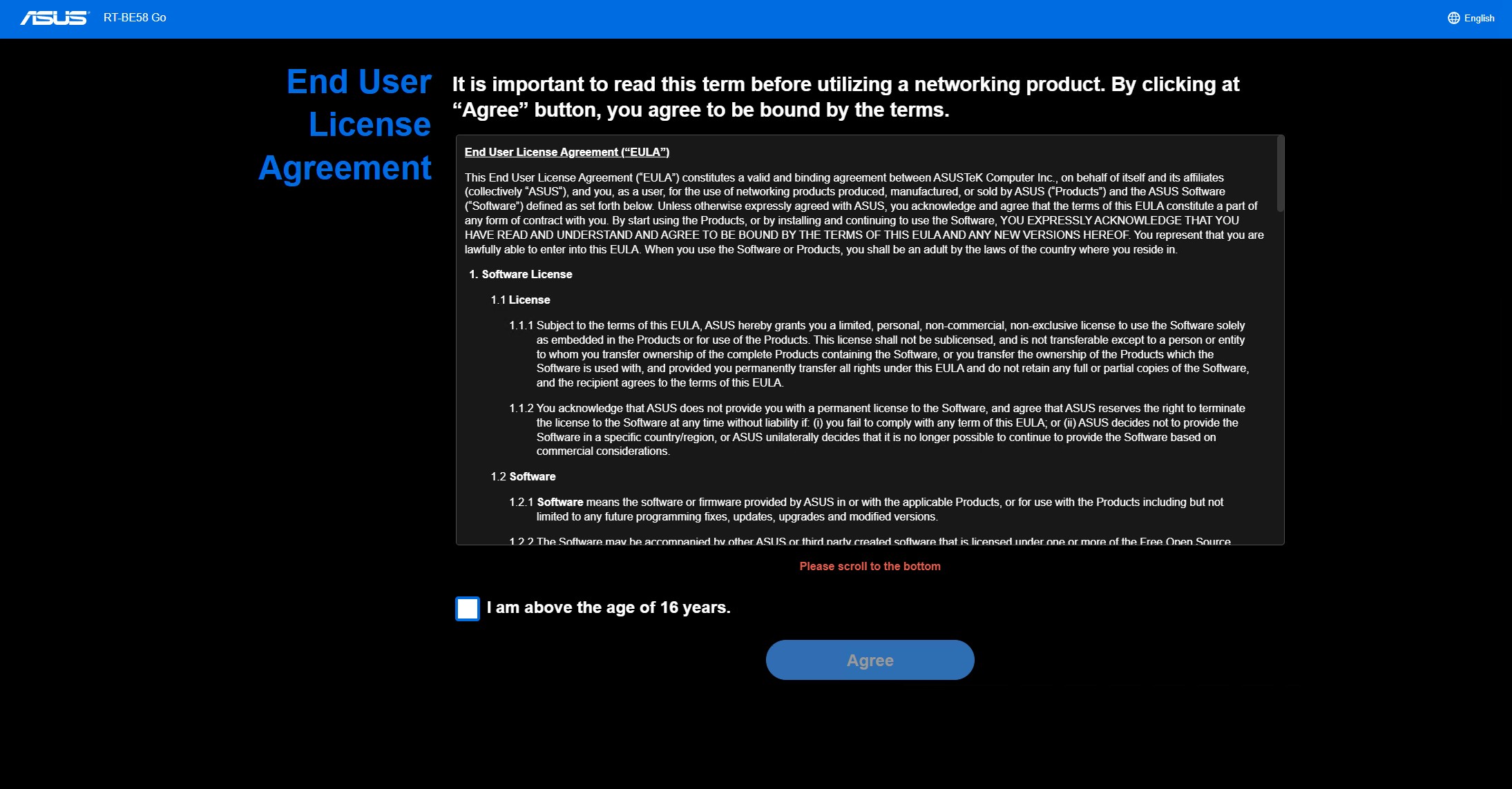ASUS RT BE58 Go Setup Step 1 EULA