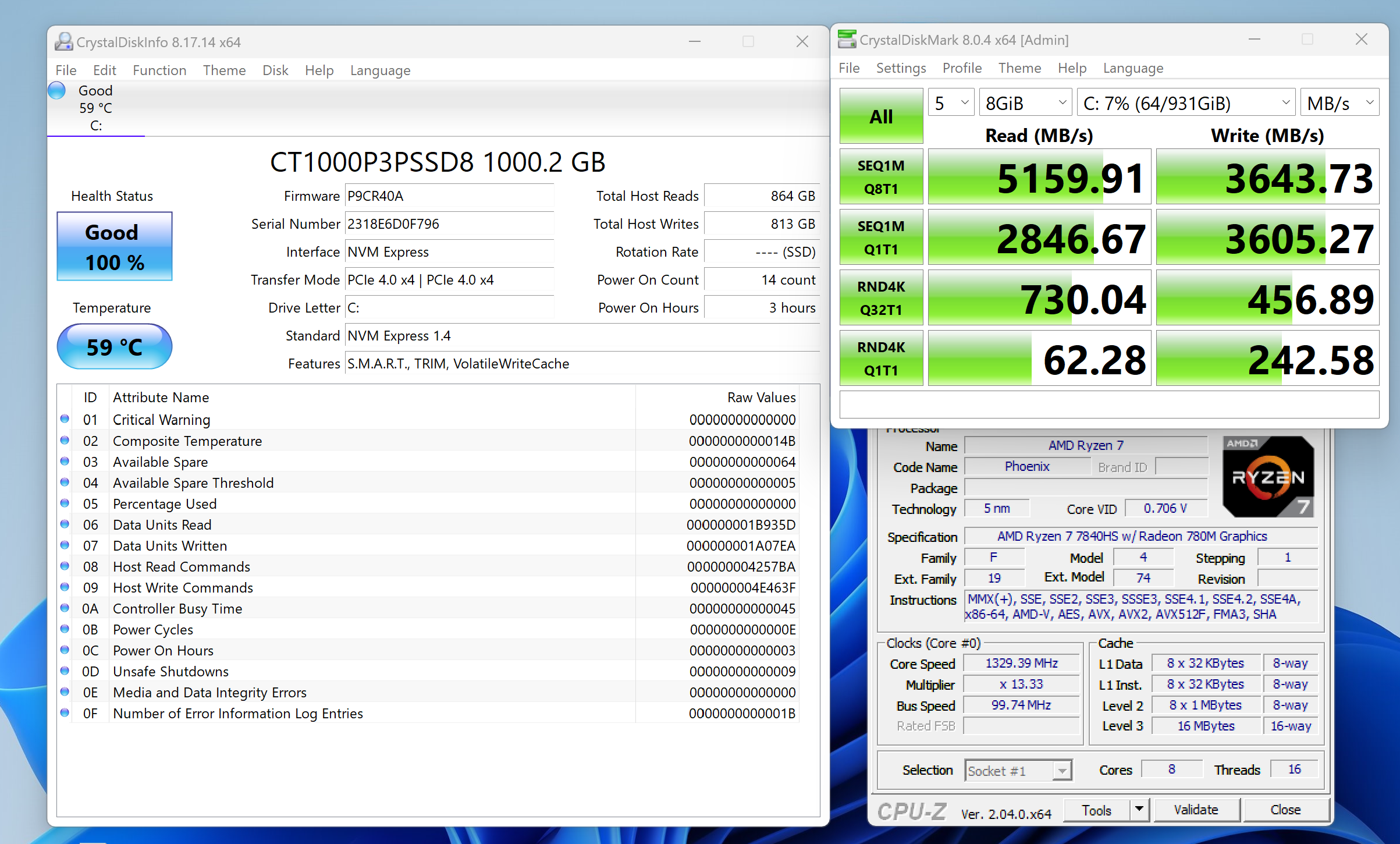 Beelink GTR7 AMD Ryzen 7 7840HS CrystalDiskMark 1TB NVMe SSD