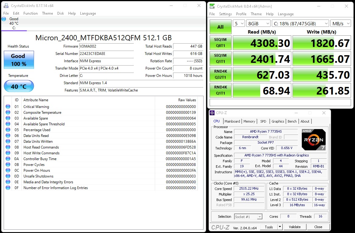 Beelink SER6 PCie Gen4 NVMe SSD CDM Micron 2400