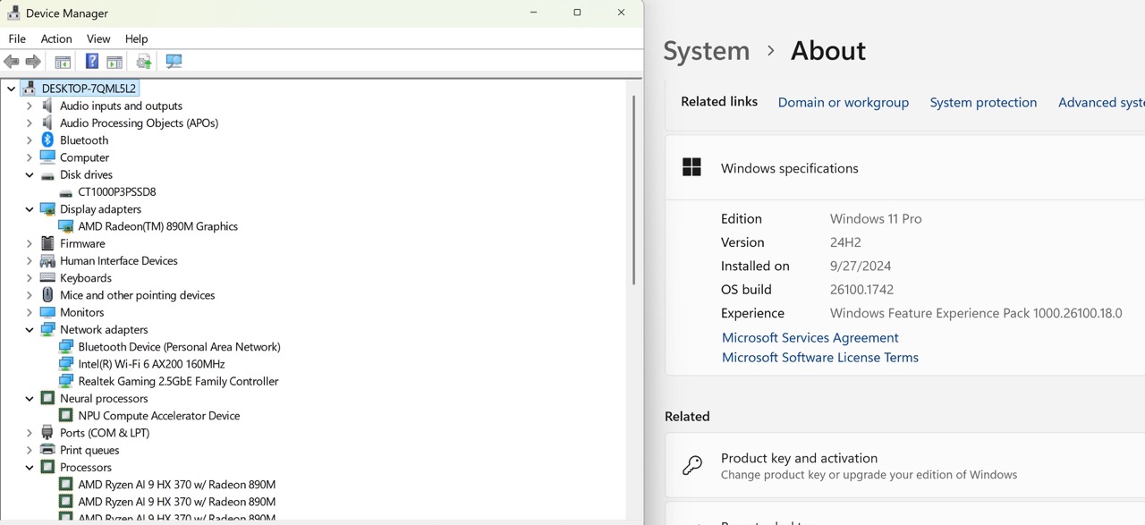 Beelink SER9 AMD Ryzen AI 9 HX 370 Device Manager And Windows Large