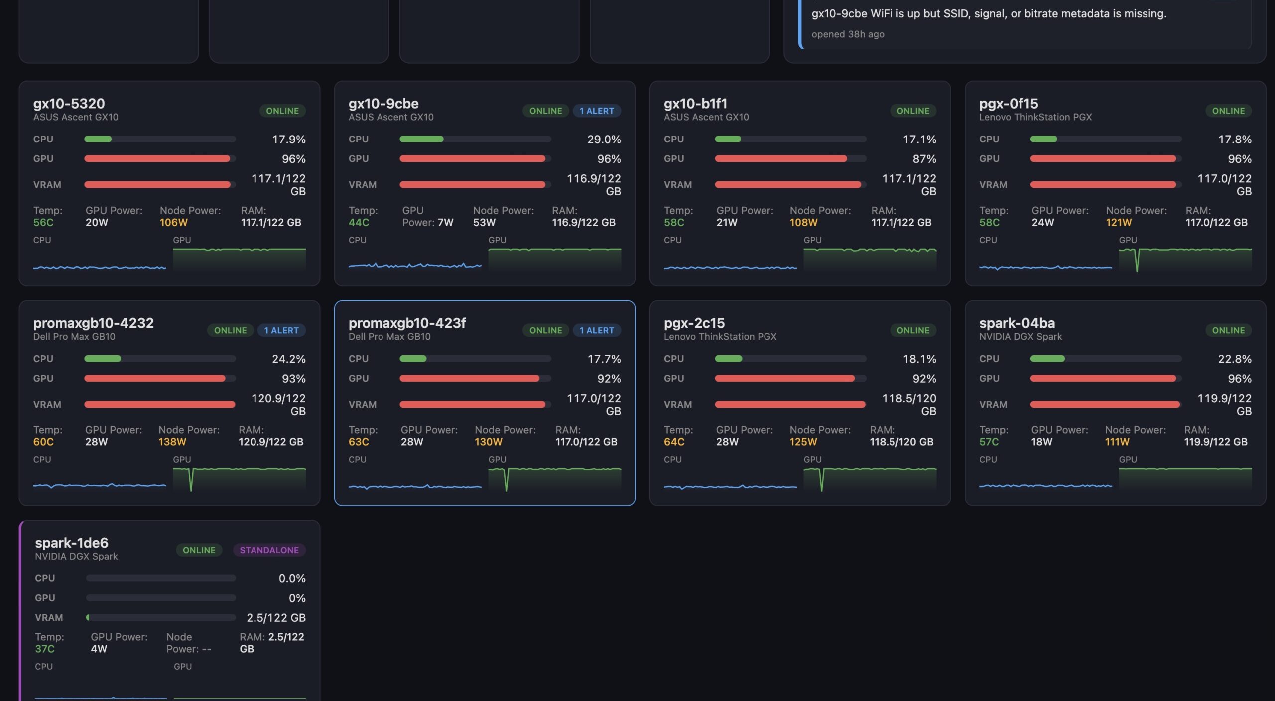8x NVIDIA GB10 Cluster Monitoring Under Load