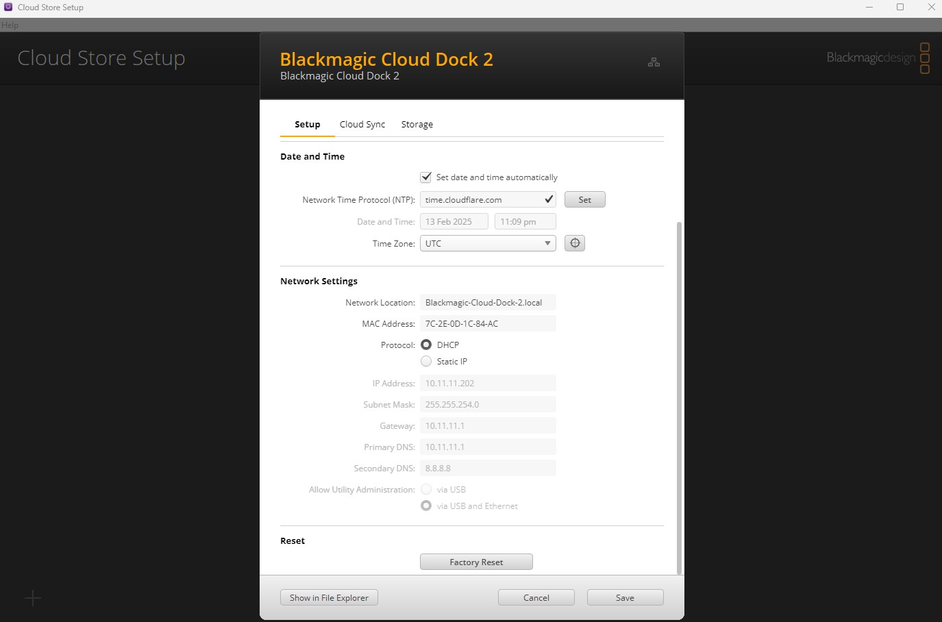 Blackmagic Cloud Dock 2 Cloud Store Setup Main Screen