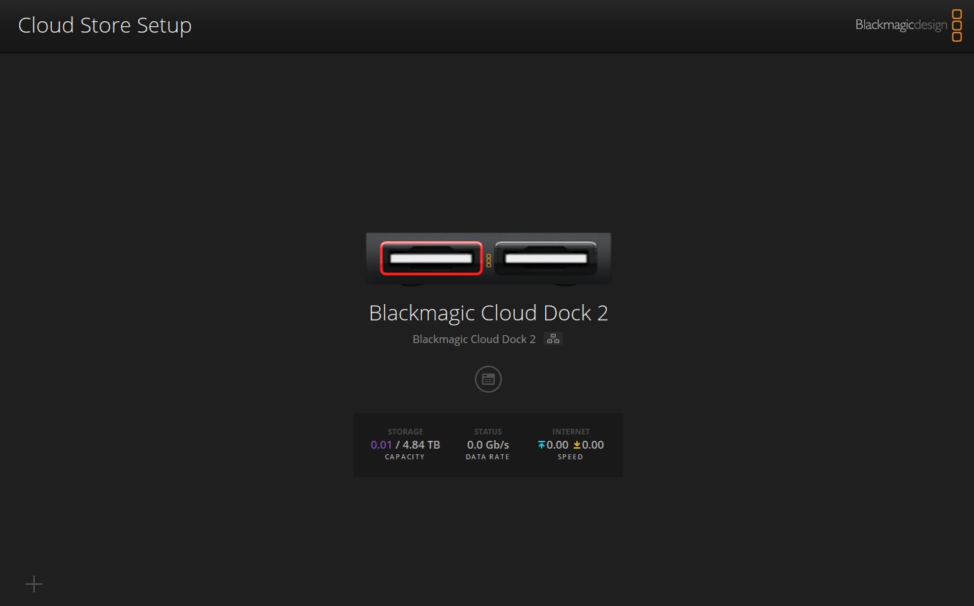 Blackmagic Cloud Dock 2 Cloud Store Setup Main Screen