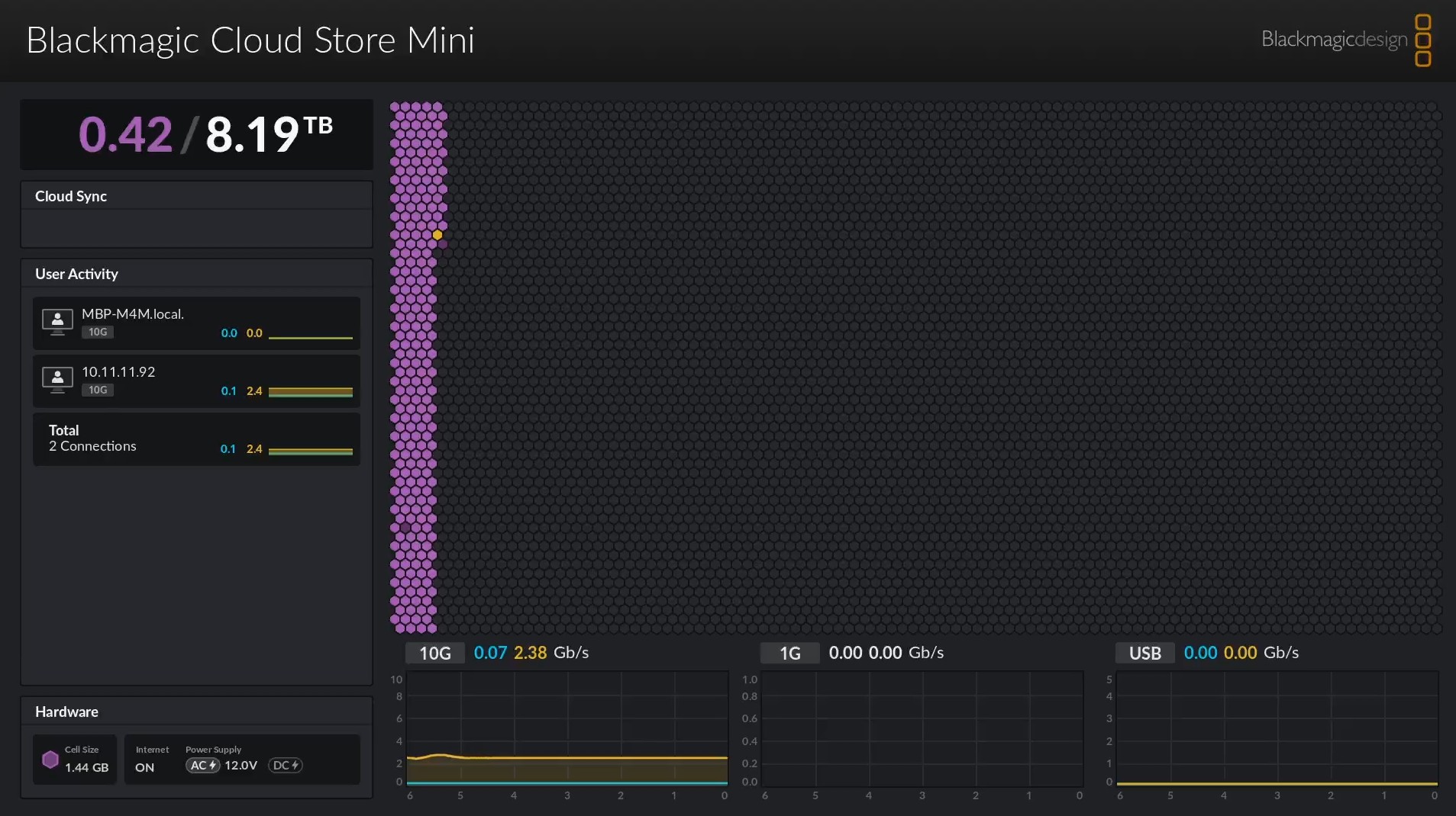 Blackmagic Cloud Store Mini 8TB Dashboard