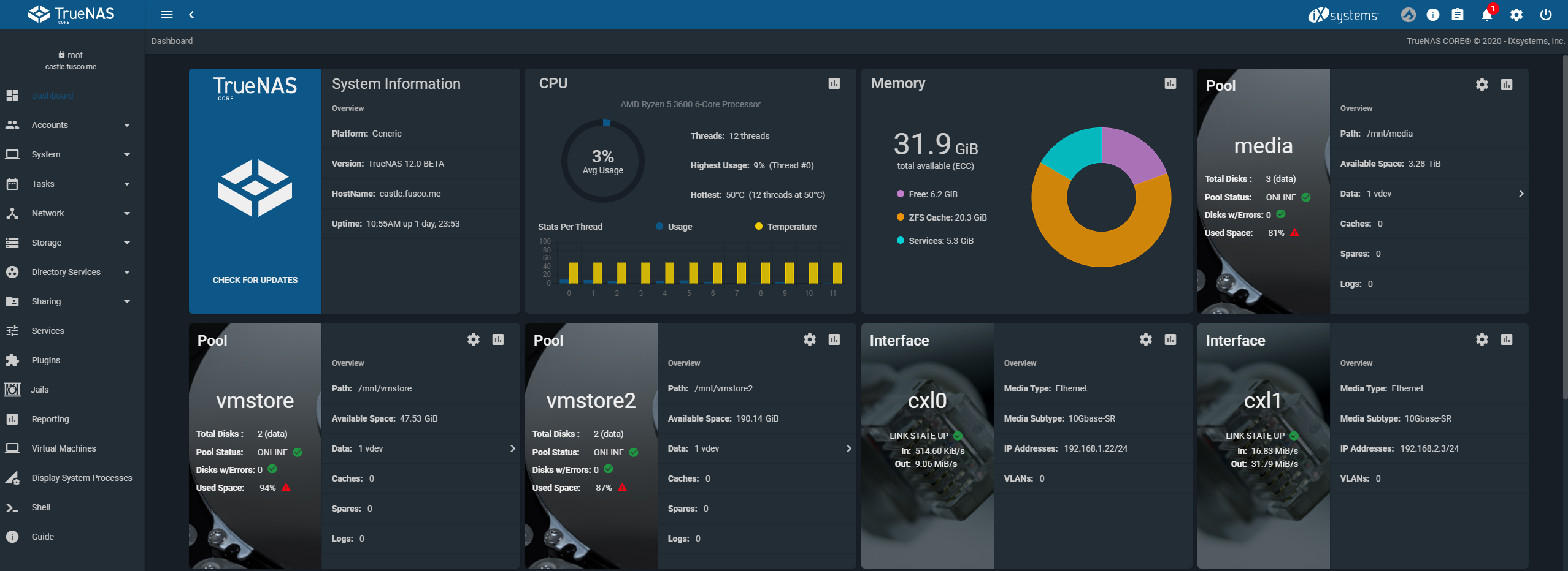 TrueNAS Core Beta Homepage
