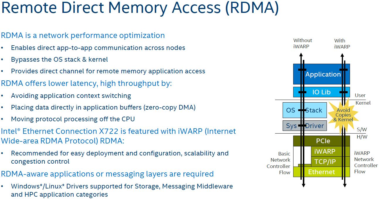 Another key feature is RDMA on the Intel X722. Intel supports iWARP instead of RCoE.