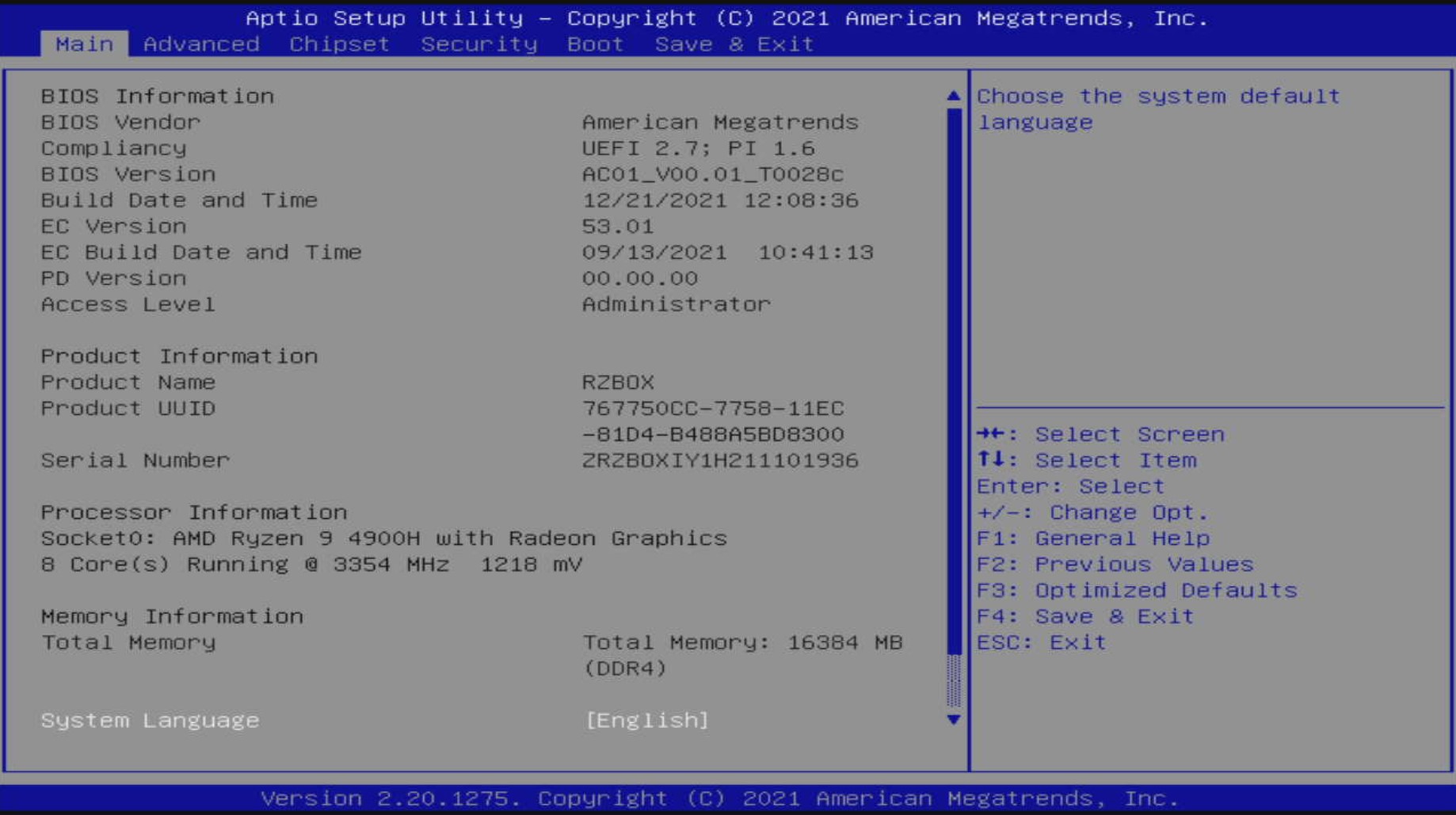 CHUWI RZBOX Ryzen 9 4900H BIOS