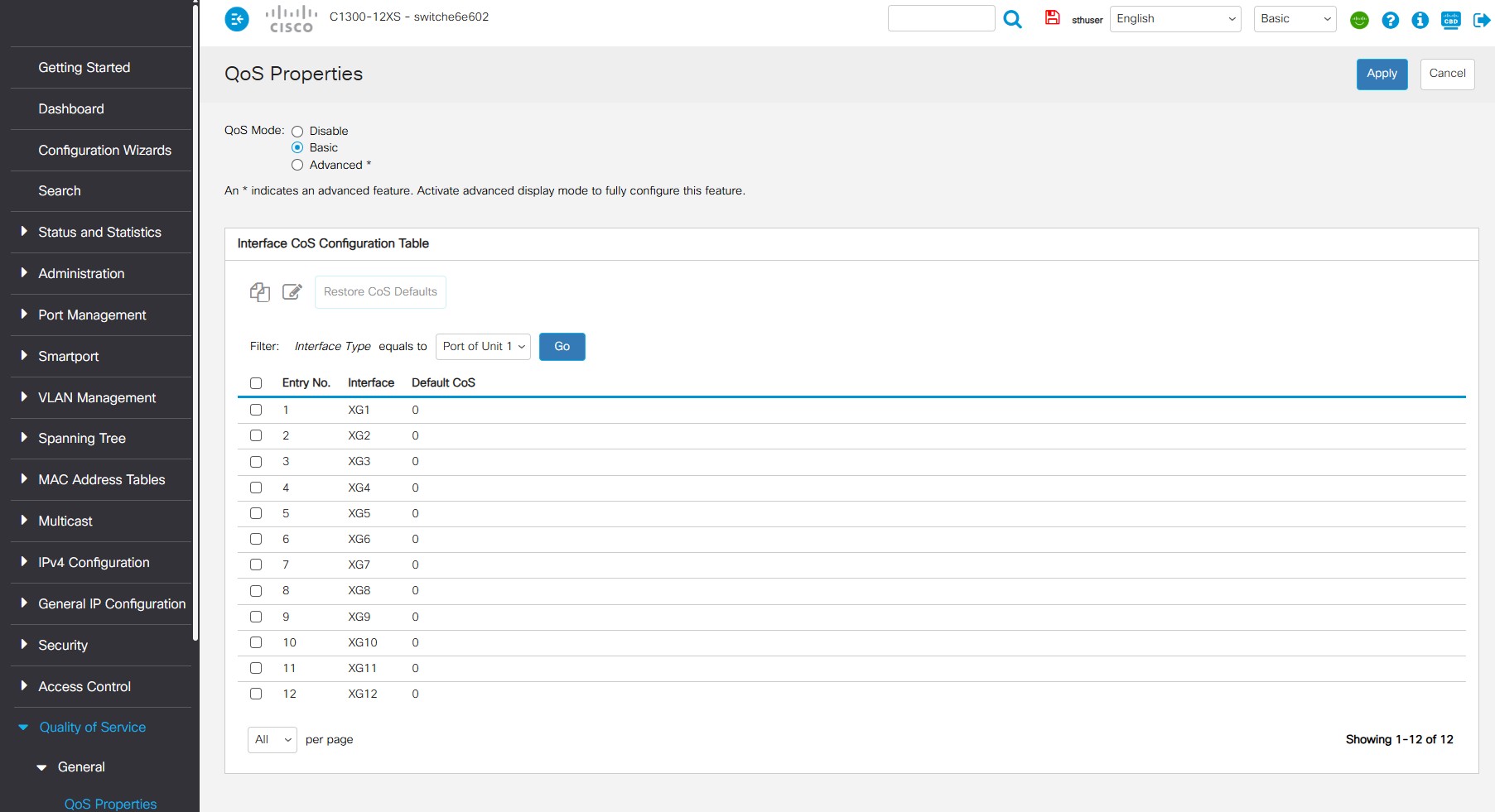 Cisco Catalyst C1300 12XS Web GUI QoS