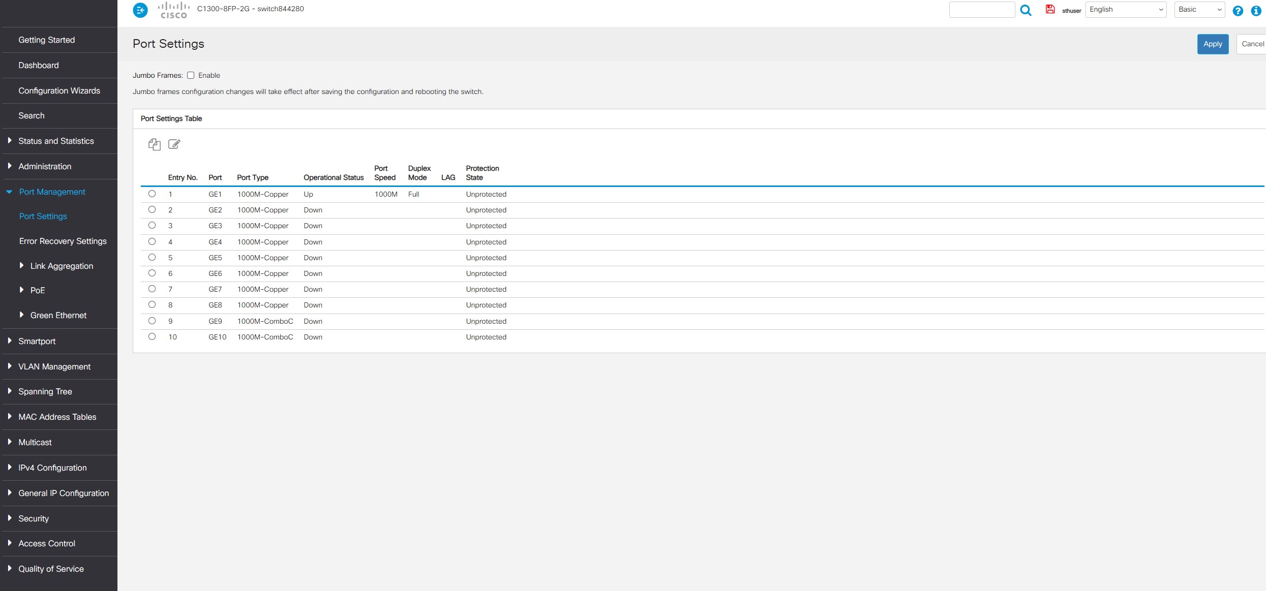 Cisco Catalyst C1300 8FP 2G Web UI Port Management