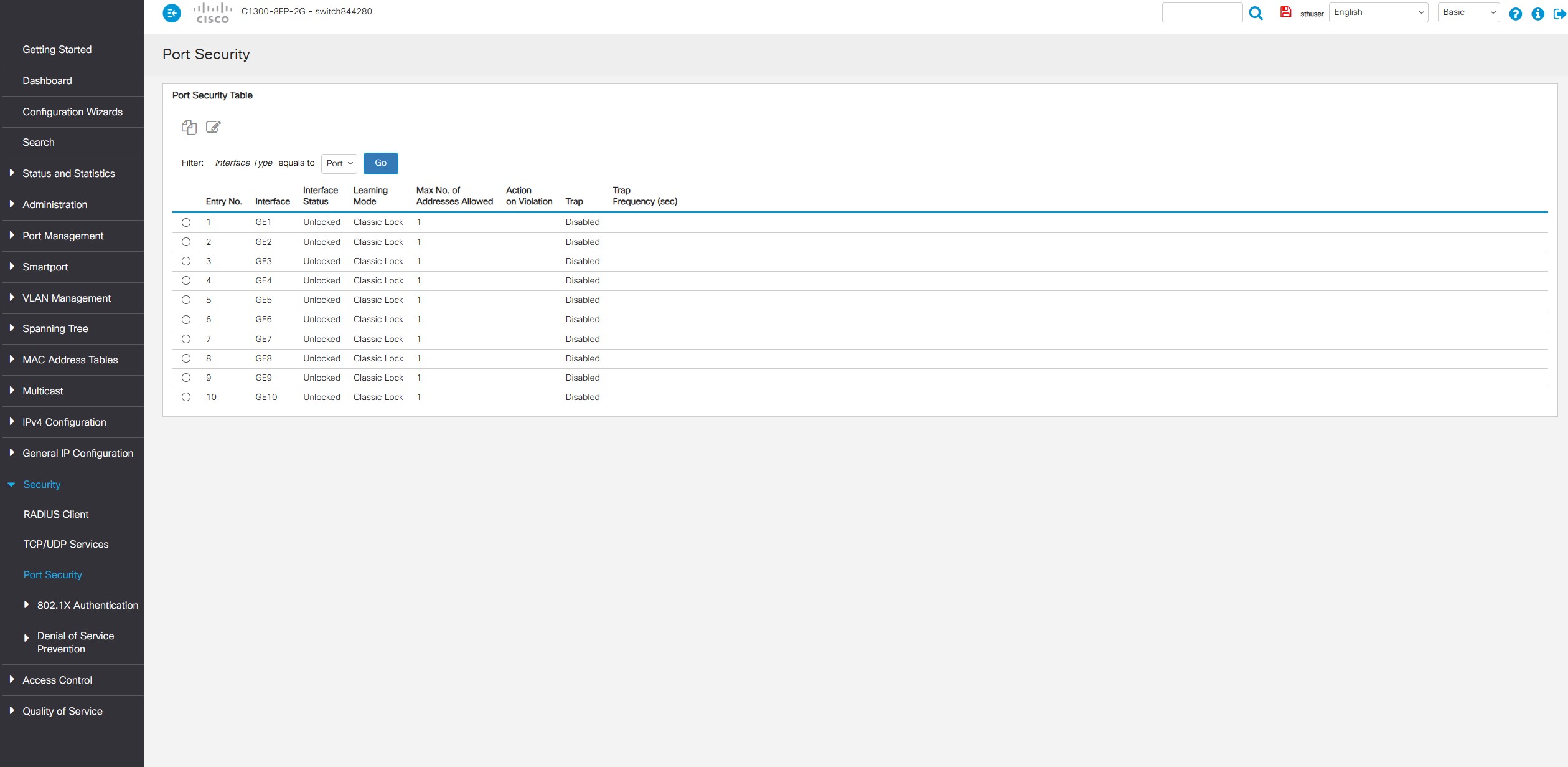 Cisco Catalyst C1300 8FP 2G Web UI Security Port Security
