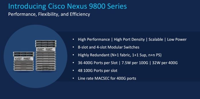While Cisco is focusing on the new 48 and 64-port Nexus 9300 today as well as the Nexus 9800 series and next quarter the Nexus 9400 series, which is the 400GbE generation. In the not too distant future, Cisco also showed its plans by building the Nexus 9800 series capable of future upgrades to the 800GbE generation.