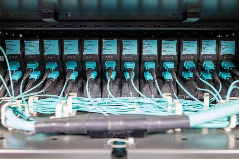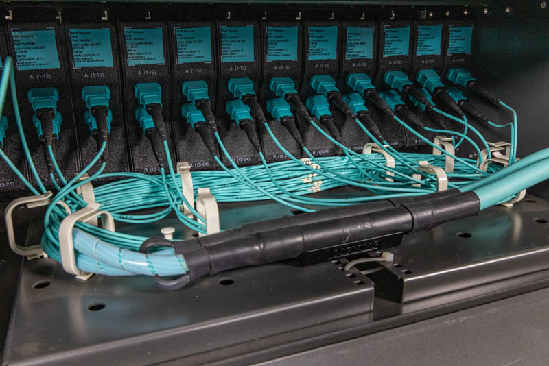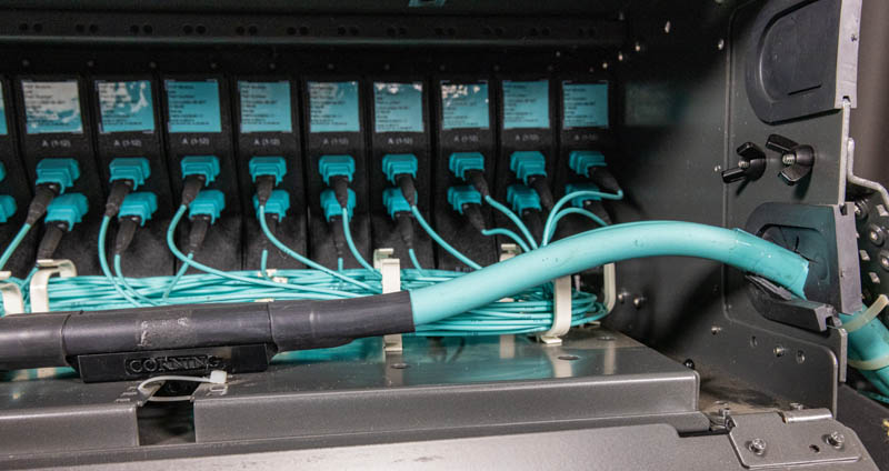These individual MTP-12 cables have some length and also need to service both sides of the 19″ 4U rackmount chassis. As a result, they are brought around the internal cable management area in the rear of the chassis to ensure they do not kink or have too extreme of bends.