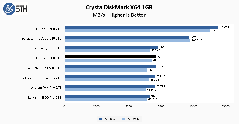 Crucial T500 2TB CrystalDiskMark 1GB Chart