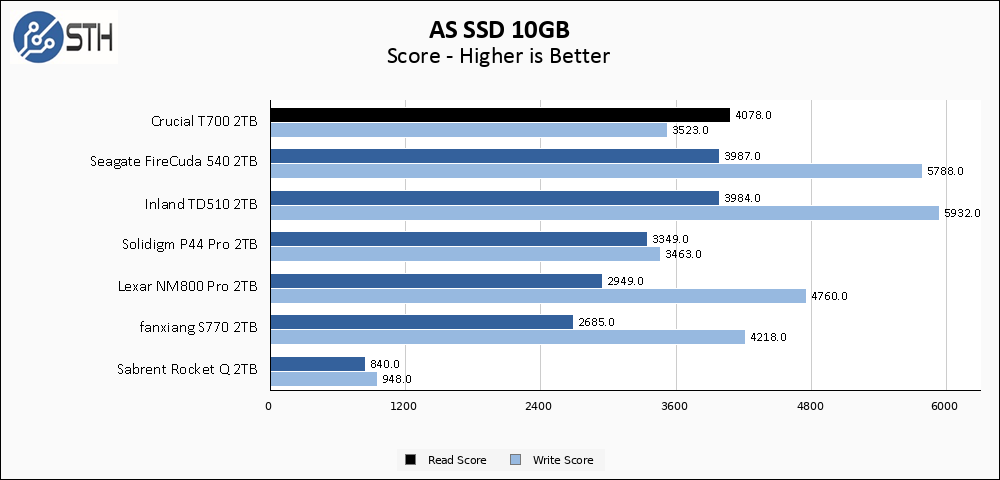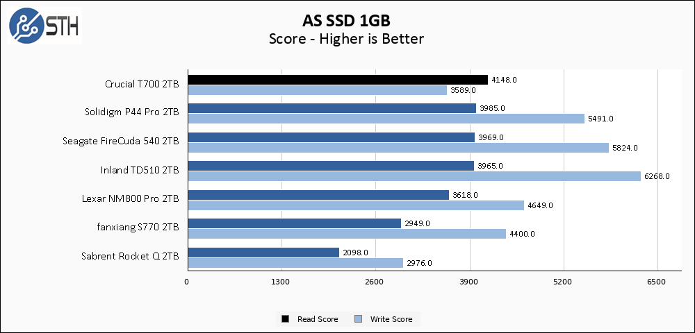 The larger AS SSD test suite shows the T700 holding strong for its performance overall, with a score that barely even changes.