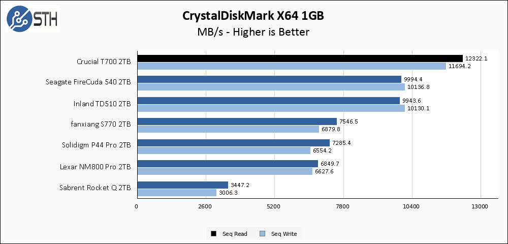 The T700 does not budge in the larger CrystalDiskMark test, which is what I would expect.
