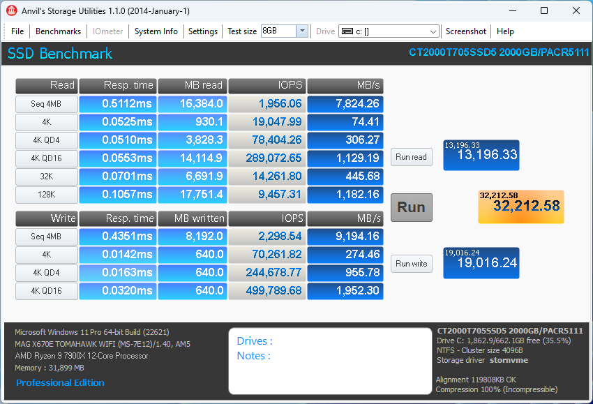 Crucial T705 2TB Anvil 8GB
