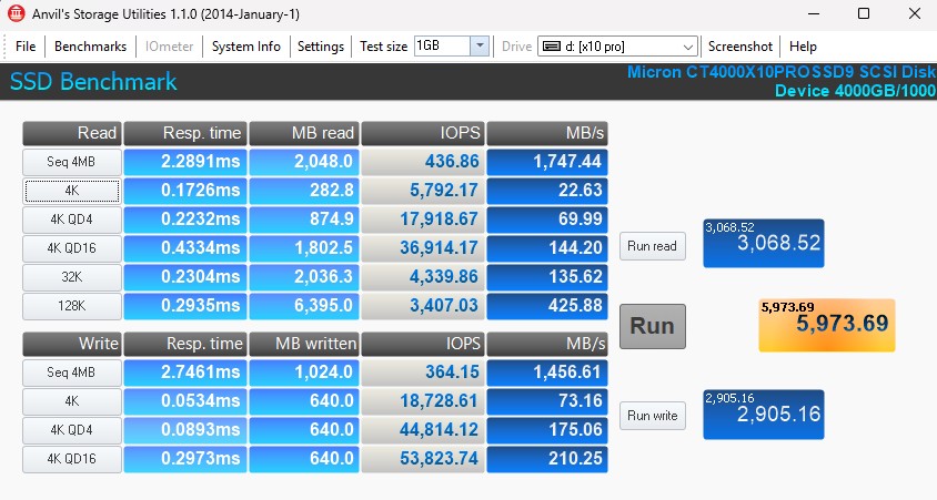 Crucial X10 Pro Anvil’s Storage Utilities 1GB