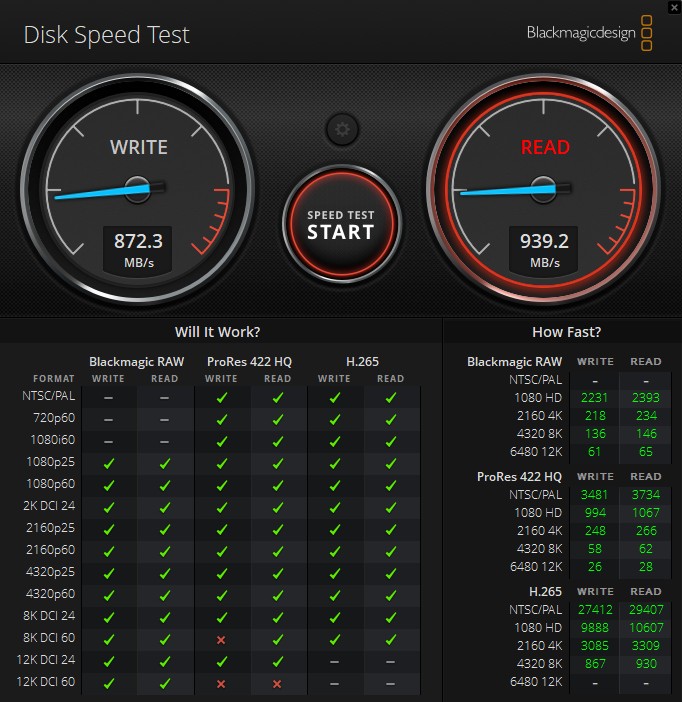 BlackMagic Disk Speed Test is focused on testing storage for use in video workflows.