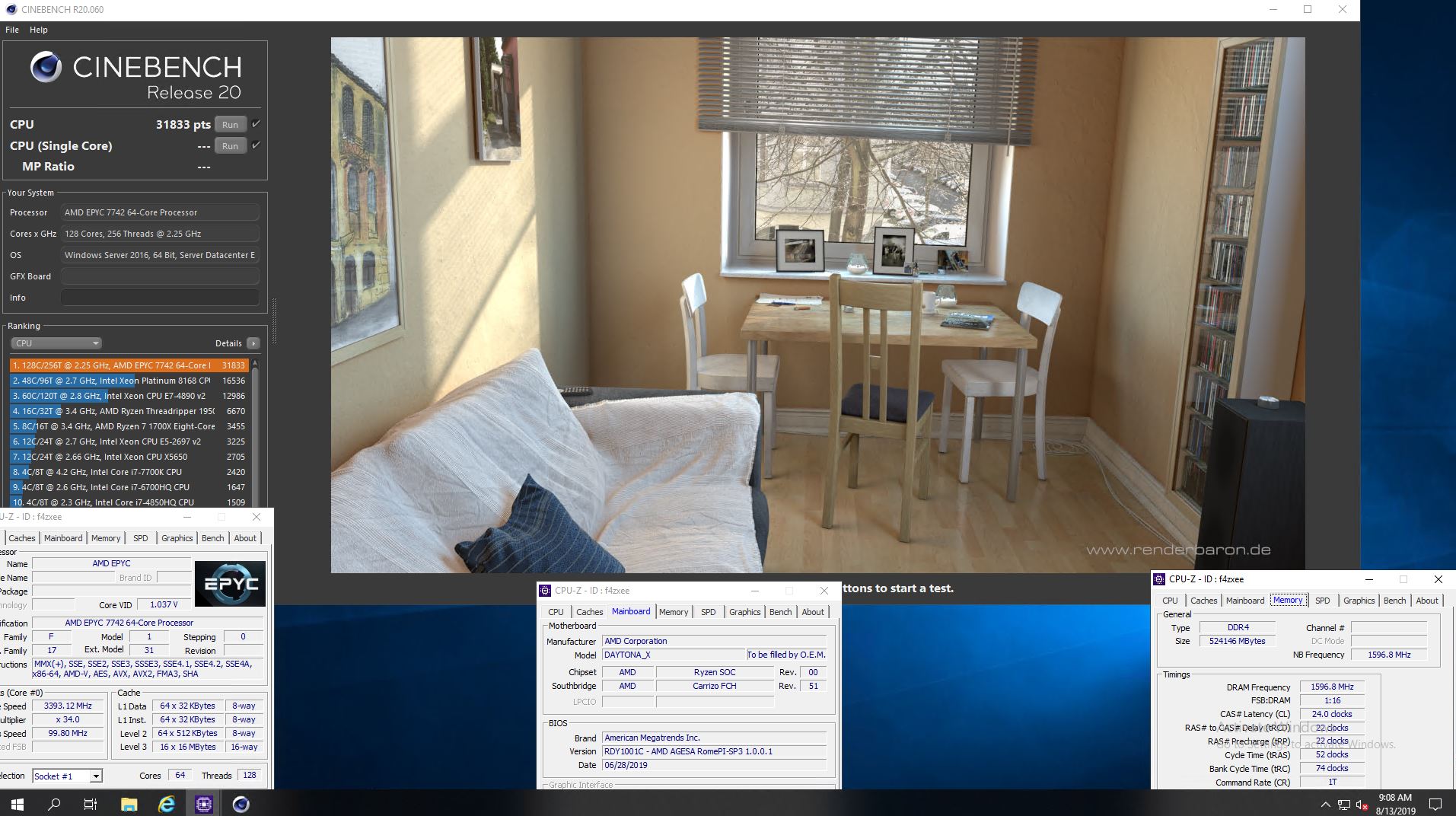 Dual AMD EPYC 7742 Cinebench R20 31833