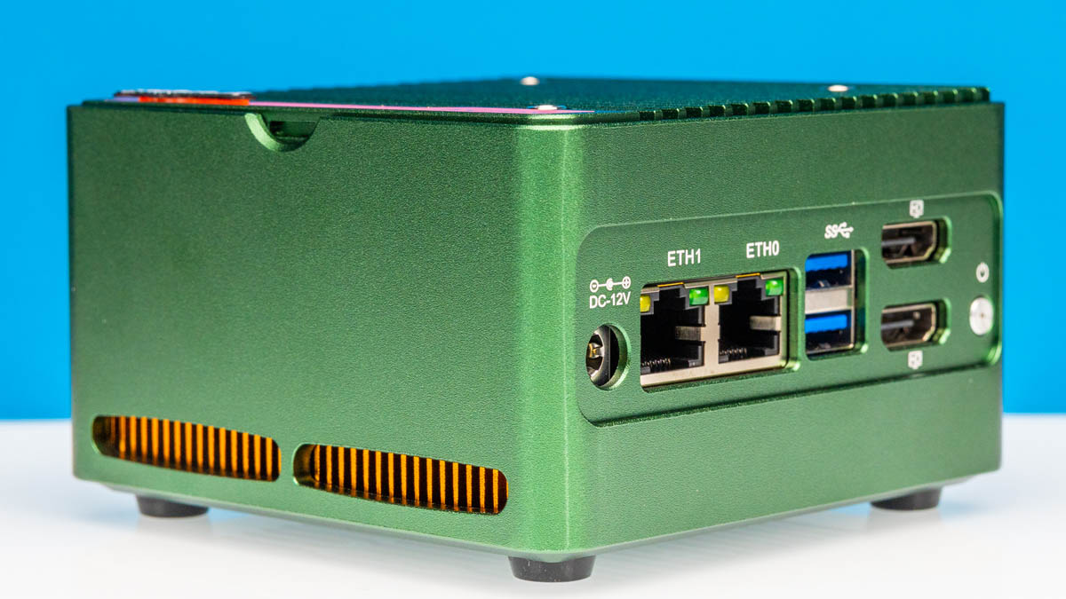 CWWK Pocket Nas Pocket PC Green Front Angled 2