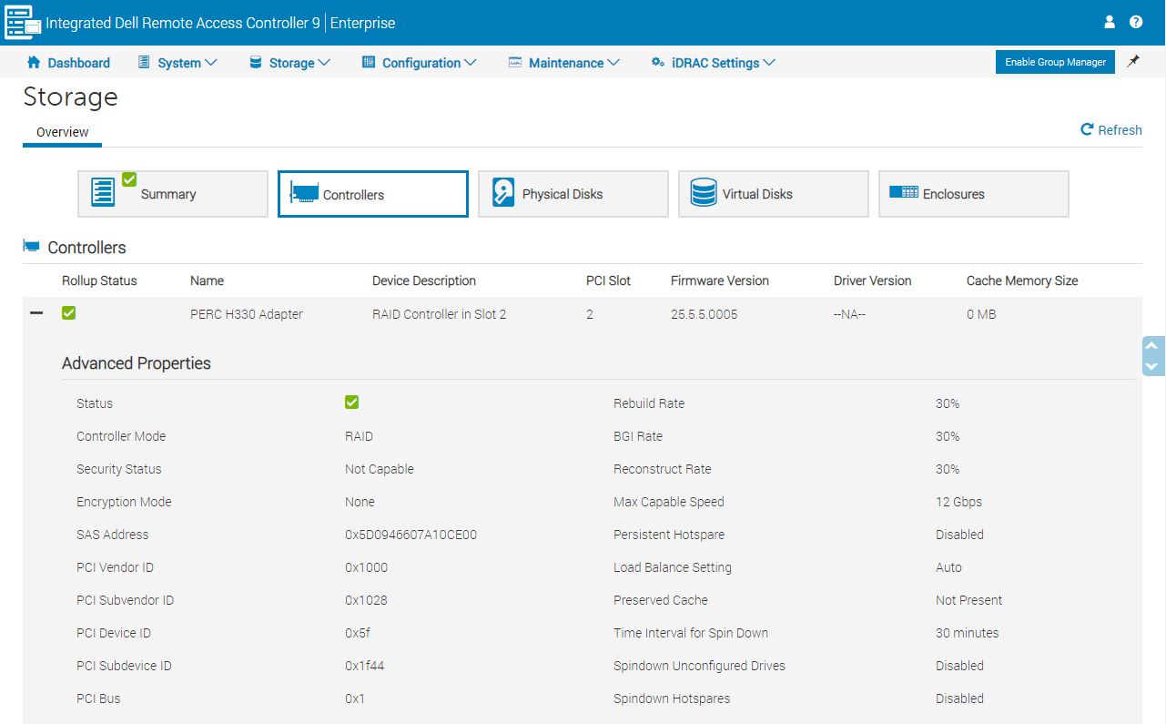 Dell EMC PowerEdge T140 IDRAC Storage H330